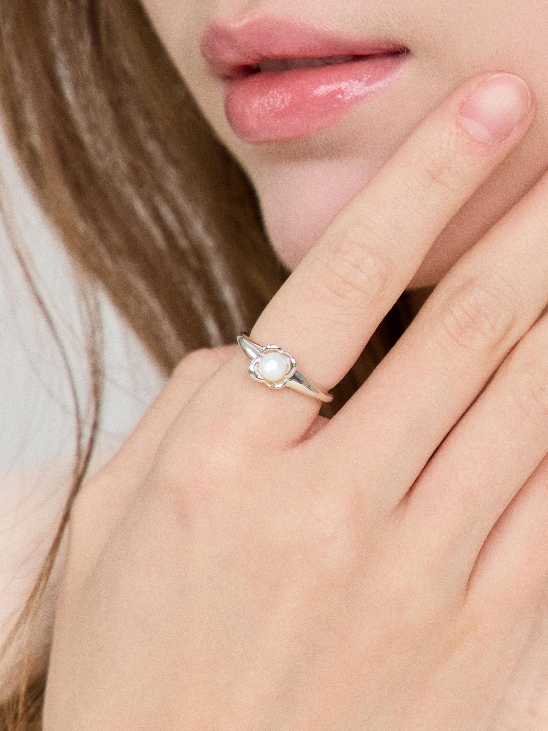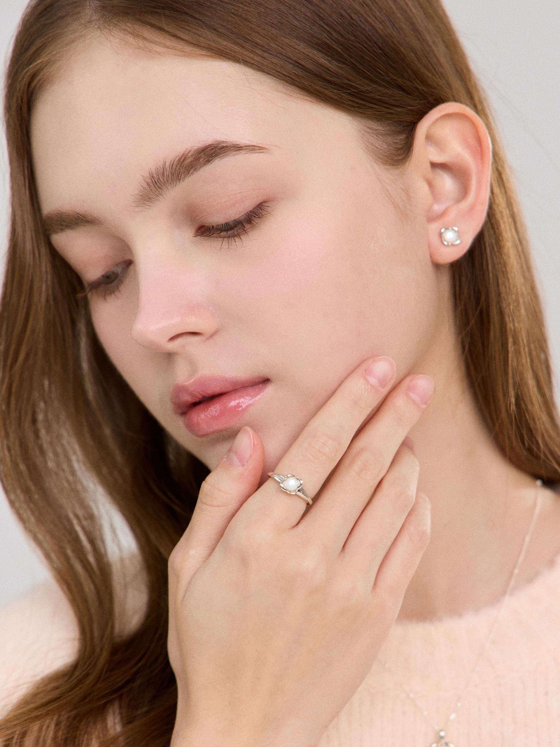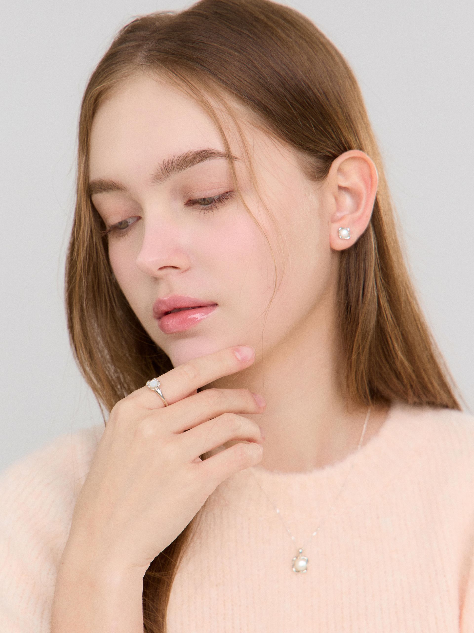 - 자개가 세팅된 누프로즈 링입니다. 네 개의 꽃잎이 보석을 부드럽게 감싸며, 자개의 은은한 광채가 자연 속 빛을 담아낸 듯 반짝입니다. 페미닌한 디자인과 섬세한 디테일이 만나 우아한 매력을 더해주는 링입니다.
