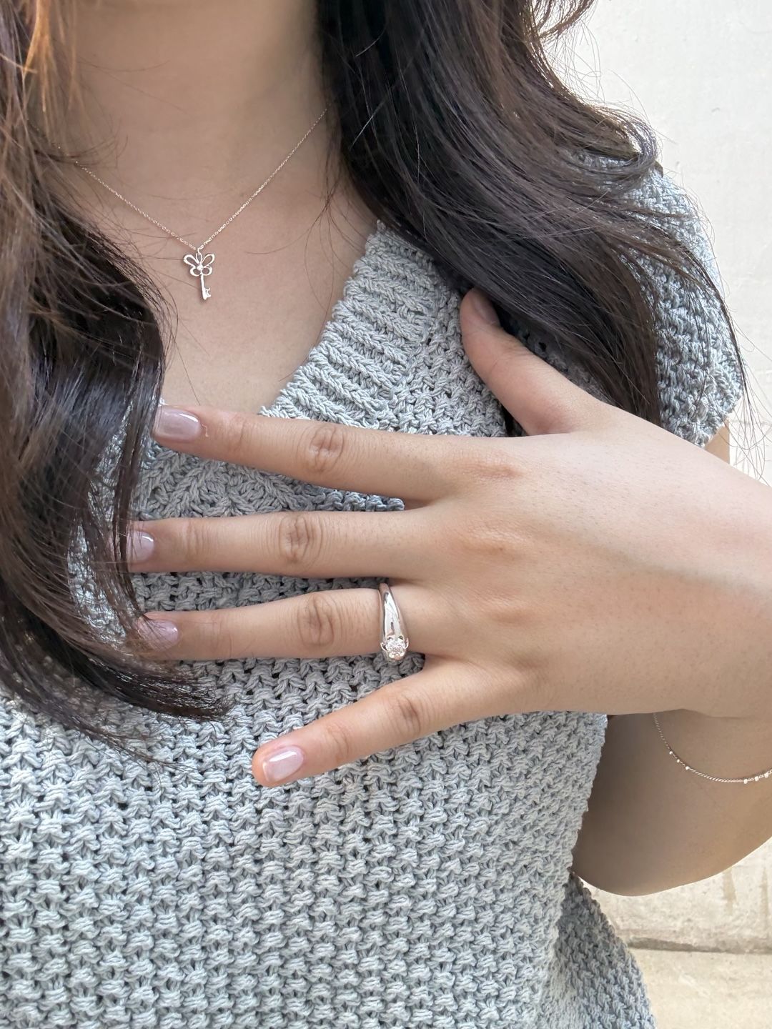 - 흔하게 볼 수 있는 디자인이 아닌 알록의 알파벳 로고를 변형하여 만든 디자인의 키 네크리스로, 가운데에 모이사나이트가 세팅되어 더욱 반짝입니다. 미니 사이즈의 팬던트 크기로, 데일리하게 즐기실 수 있어 추천드립니다.